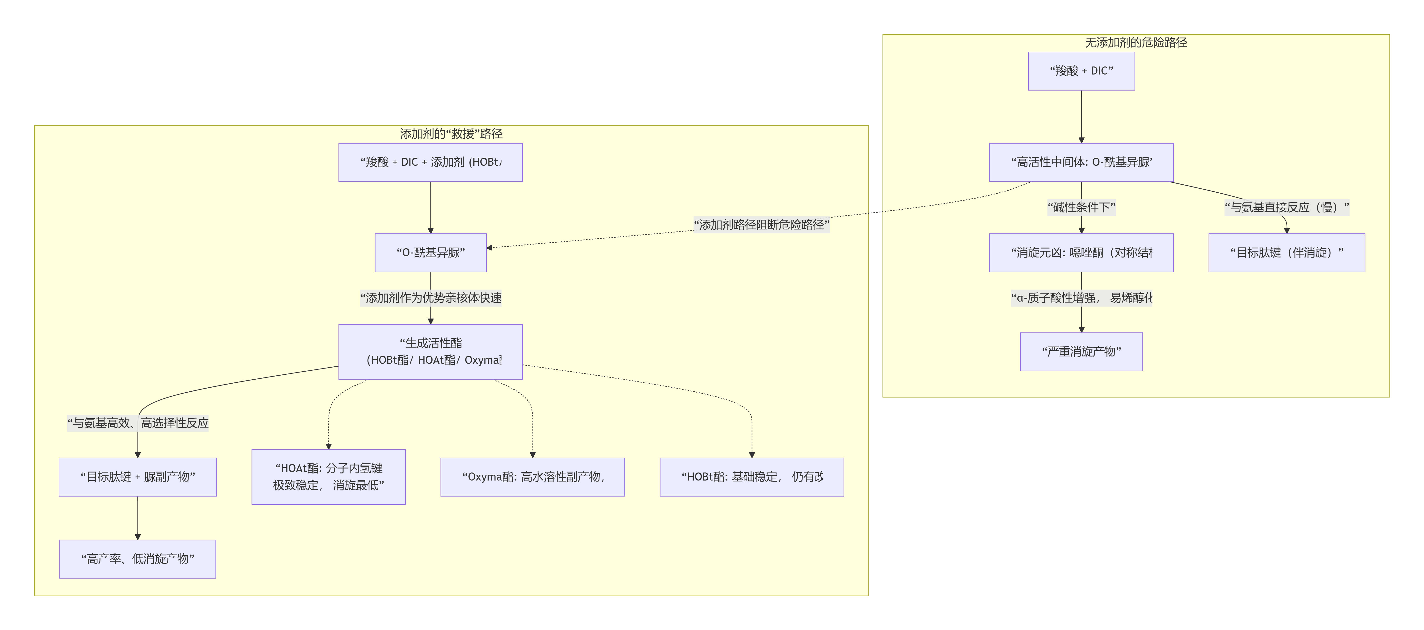 除了核心的消旋控制,添加劑還通過(guò)形成活性酯,避免了氨基與其它高活性中間體(如對(duì)稱酸酐)的反應(yīng),減少了形成多聚體等副反應(yīng)。此外,它們還能改善反應(yīng)體系的均一性,對(duì)攻克“困難序列”也有間接助益。