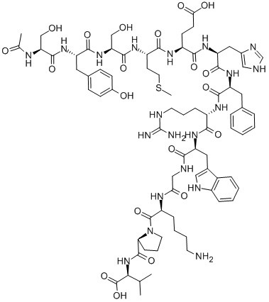 val(13)-alpha-msh(1-13;ALPHA-MELANOCYTE STIMULATING HORMONE (FREE-ACID);ALPHA-MELANOCYTE STIMULATING HORMONE;ALPHA-MSH;ALPHA-MSH (FREE ACID);ACETYL-ACTH (1-13);ACETYL ADRENOCORTICOTROPIC HORMONE (1-13);AC-SER-TYR-SER-MET-GLU-HIS-PHE-ARG-TRP-GLY-LYS-PRO-VAL |