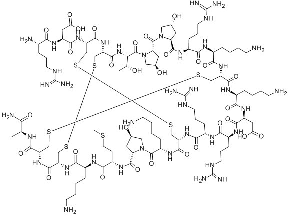 Arg-Asp-Cys-Cys-Thr-Hyp-Hyp-Arg-Lys-Cys-Lys-Asp-Arg-Arg-Cys-Lys- Hyp-Met-Lys-Cys-Cys-Ala-NH2|H-Arg-Asp-Cys-Cys-Thr-Hyp-Hyp-Arg-Lys-Cys-Lys-Asp-Arg-Arg-Cys-Lys-Hyp-Met-Lys-Cys-Cys-Ala-NH2 |