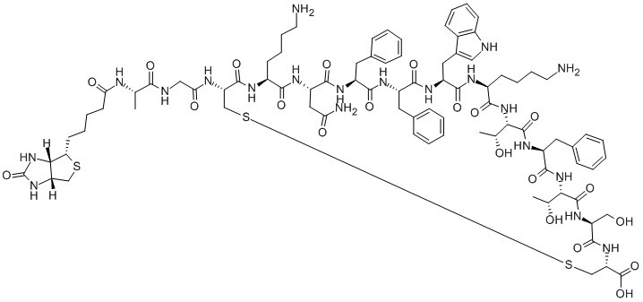 BIOTINYL-ALA-GLY-CYS-LYS-ASN-PHE-PHE-TRP-LYS-THR-PHE-THR-SER-CYS-OH, (DISULFIDE BOND)
