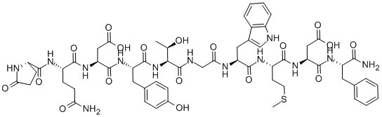 PYR-GLN-ASP-TYR-THR-GLY-TRP-MET-ASP-PHE-NH2;GLP-GLN-ASP-TYR-THR-GLY-TRP-MET-ASP-PHE-NH2;CAERULEIN (DESULFATED);CAERULEIN NON-SULFATED;Caerulein, 4-desulfo-;4-Desulfocaerulein;5-Oxo-L-Pro-L-Gln-L-Asp-L-Tyr-L-Thr-Gly-L-Trp-L-Met-L-Asp-L-Phe-NH2;pGlu-Gln-αAsp-Tyr-Thr-Gly-Trp-Met-αAsp-Phe-NH2 |