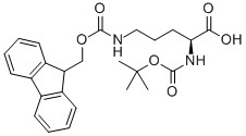 N-叔丁氧羰基-N'-芴甲氧羰基-L-鳥(niǎo)氨酸; N^A-BOC-N^D-FMOC-L-鳥(niǎo)氨酸; NΑ-叔丁氧羰基-NΔ-芴甲氧羰基-L-鳥(niǎo)氨酸; NΔ-FMOC-NΑ-BOC-L-鳥(niǎo)氨酸 |