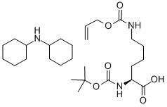 NDELTA-ALLOC-NALPHA-BOC-L-LYSINE DICYCLOHEXYLAMINE SALT; NALPHA-BOC-NDELTA-ALLOC-L-LYSINE DICYCLOHEXYLAMINE SALT; N-ALPHA-TERT-BUTYLOXYCARBONYL-N-EPSILON-ALLYLOXYCARBONYL-L-LYSINE DICYCLOHEXYLAMINE; N-ALPHA-T-BUTOXYCARBONYL-N-EPSILON-ALLYLOXYCARBONYL-L-LYSINE DICYCLOHEXYLAMMONIUM SALT; N-ALPHA-T-BUTYLOXYCARBONYL-N-EPSILON-ALLYLOXYCARBONYL-L-LYSINE DICYCLOHEXYLAMIN; N-ALPHA-T-BOC-N-EPSILON-ALLYLOXYCARBONYL-L-LYSINE DICYCLOHEXYLAMMONIUM SALT; BOC-N-EPSILON-ALLYLOXYCARBONYL-L-LYSINE DICYCLOHEXYL AMMONIUM SALT; BOC-LYS(ALLOC)-OH DCHA SALT |