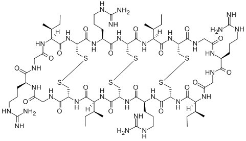 CYCLO(-GLY-ILE-CYS-ARG-CYS-ILE-CYS-GLY-ARG-GLY-ILE-CYS-ARG-CYS-ILE-CYS-GLY-ARG);CYCLO(-GLY-ILE-CYS-ARG-CYS-ILE-CYS-GLY-ARG-GLY-ILE-CYS-ARG-CYS-ILE-CYS-GLY-ARG), (DISULFIDE BONDS BETWEEN CYS3 AND CYS16/CYS5 AND CYS14/CYS7 AND CYS12);RC-100;RETROCYCLIN-1;Retrocyclin-1 RC-100 |