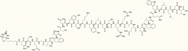 Biotin-His-Ser-Gln-Gly-Thr-Phe-Thr-Ser-Asp-Tyr-Ser-Lys-Tyr-Leu-Asp-Ser-Arg-Arg-Ala-Gln-Asp-Phe-Val-Gln-Trp-Leu-Met-Asn-Thr | Biotin-His-Ser-Gln-Gly-Thr-Phe-Thr-Ser-Asp-Tyr-Ser-Lys-Tyr-Leu-Asp-Ser-Arg-Arg-Ala-Gln-Asp-Phe-Val-Gln-Trp-Leu-Met-Asn-Thr-OH |